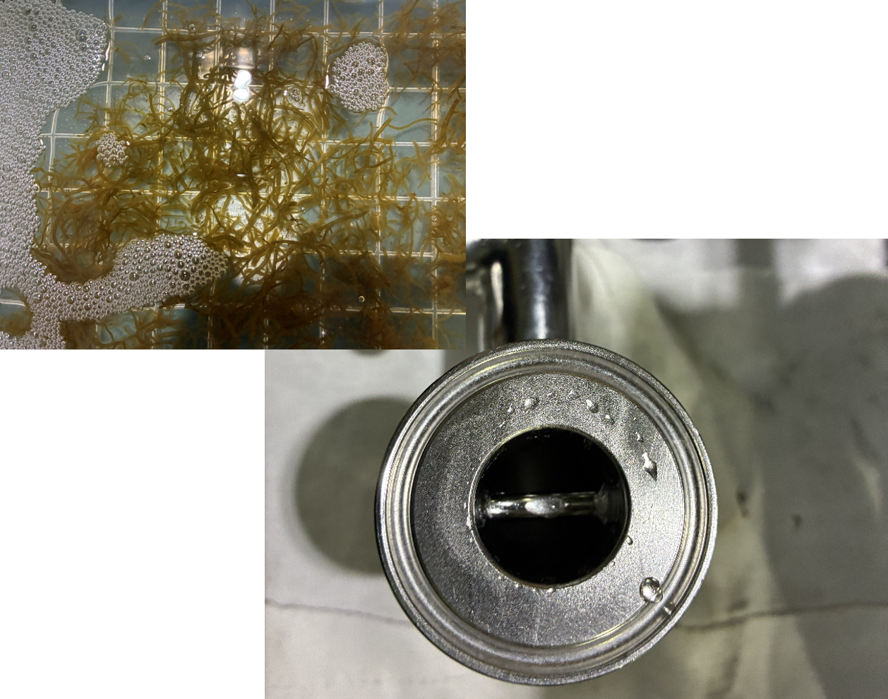 固形物を含む流体の移送にも対応しています。海藻類「もずく」を用いた実証テストでは、素材を傷めることなく移送が可能であり、逆止弁部での詰まりや引っかかりも発生しませんでした。食品原料などデリケートな固形物を含む流体の搬送にも適しています。